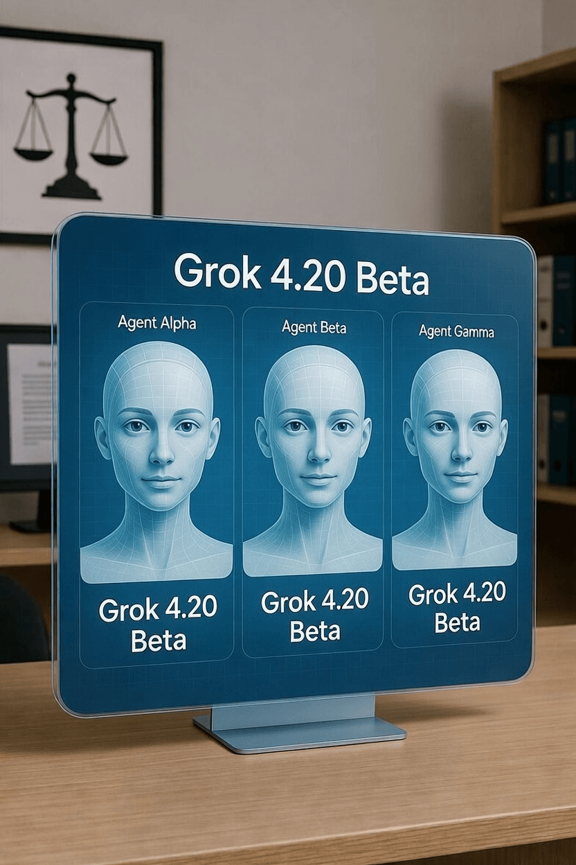 Esta es la mejora estrella y la más disruptiva para el ámbito legal. Grok 4.20 no es un modelo único: activa automáticamente cuatro agentes especializados que razonan simultáneamente, se contrastan y sintetizan una respuesta consensuada antes de entregarla. Los roles son:
